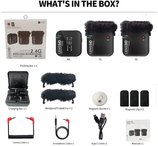 LENSGO 348-C Compact Wireless Microphone System Transmitter/Receiver Wireless Solution with Magnetic Gear Clip-On Lavalier Microphone (2 TX & 1 RX)