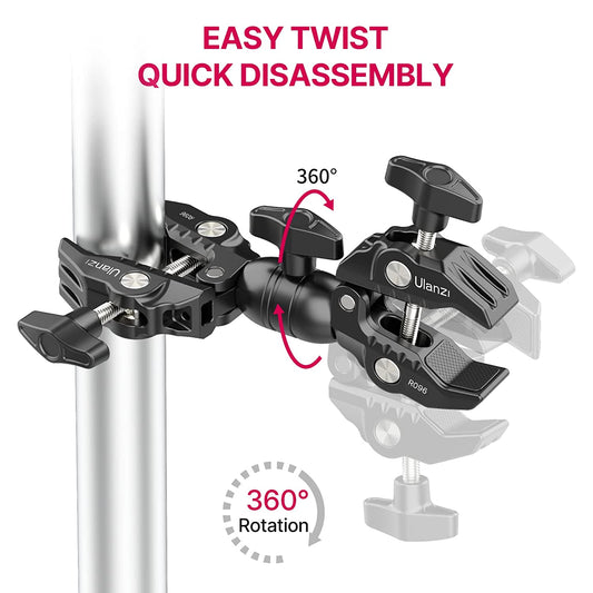 Regular price Rs. 3,699.00Regular priceUnit price / perRs. 4,499.00Sale price Rs. 3,699.00SaleULANZI R105 Super Clamp with 360° Dual Ballhead Arm, Y-Claw Mount for GoPro, Insta360, DJI