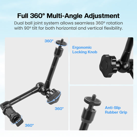 Regular price Rs. 849.00Regular priceUnit price / perRs. 1,500.00Sale price Rs. 849.00SaleHIFFIN® 7 Inch Articulating Friction Magic Arm & Large Adjustable Super Rod Clamp Pliers Clip with 1/4" and 3/8" Thread for DSLR Camera Rig, LCD Monitor, LED Flash Lights (7'Arm & Clip)