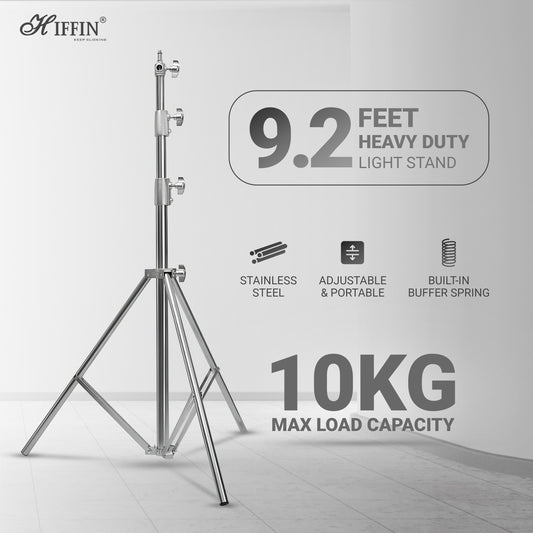 Regular price Rs. 849.00Regular priceUnit price / perRs. 1,500.00Sale price Rs. 849.00SaleHIFFIN Stainless Steel Heavy Duty 99.06-279.4 CM Adjustable Light Stand with 0.635 CM to 0.9525 CM Universal Adapter for Studio Monolights, Softbox, and More Equipment