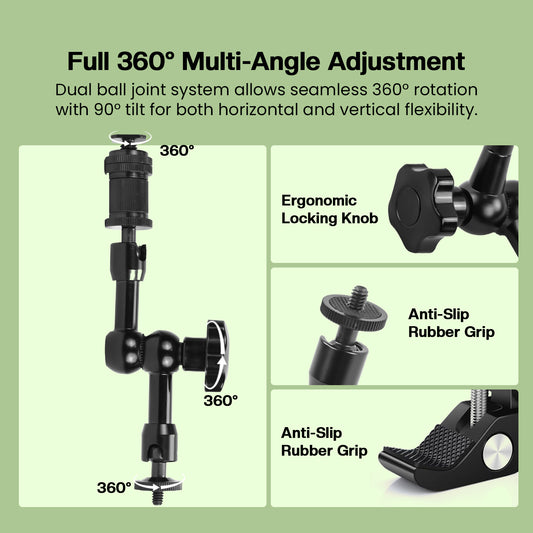 Regular price Rs. 899.00Regular priceUnit price / perRs. 3,000.00Sale price Rs. 899.00SaleHIFFIN® 7 Inch Articulating Friction Magic Arm & Large Adjustable Super Rod Clamp Pliers Clip with 1/4" and 3/8" Thread for DSLR Camera Rig, LCD Monitor, LED Flash Lights (7'Arm & Clip)