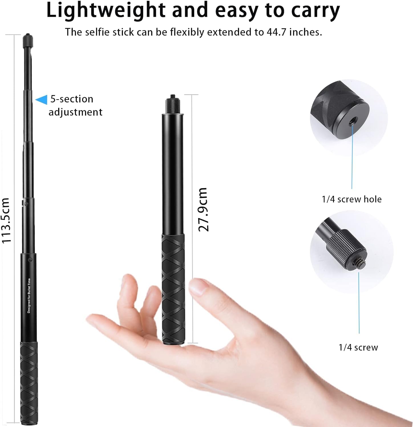 - Flexible Telescopic Design: Extendable from 11 inches to 44.7 inches with a 5-section telescopic tube design, allowing you to capture dynamic shots from various angles and distances effortlessly.